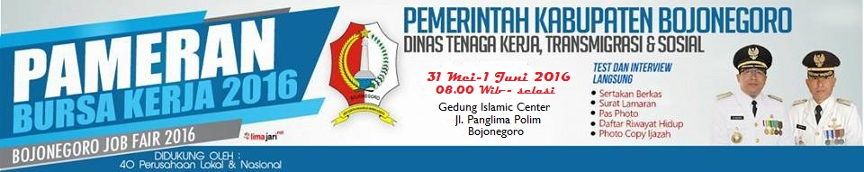 IKUTILAH JOB MARKET FAIR DI KABUPATEN BOJONEGORO TAHUN 2016 YANG AKAN DILAKSANAKAN PADA TANGGAL 31 MEI - 1 JUNI 2016 DI GEDUNG...